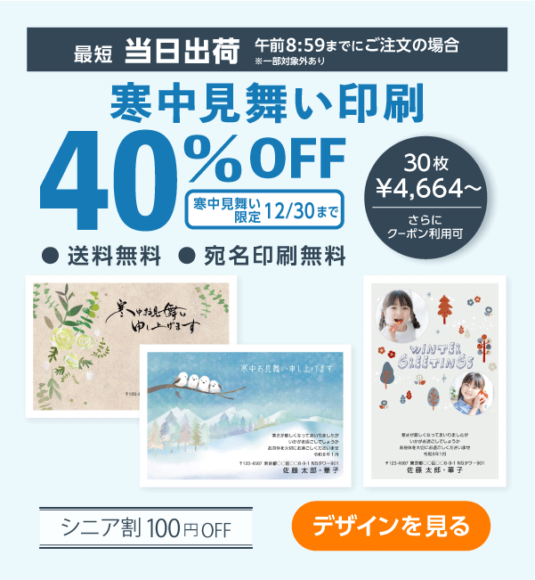 喪中はがき・寒中見舞いは10月中旬よりご注文順に出荷の予定です。