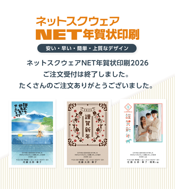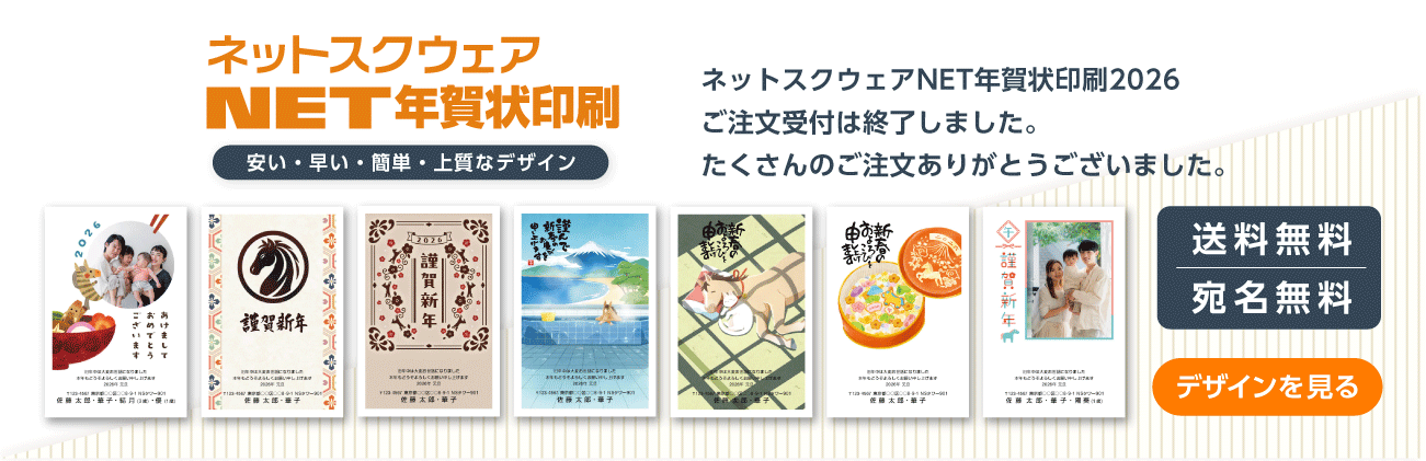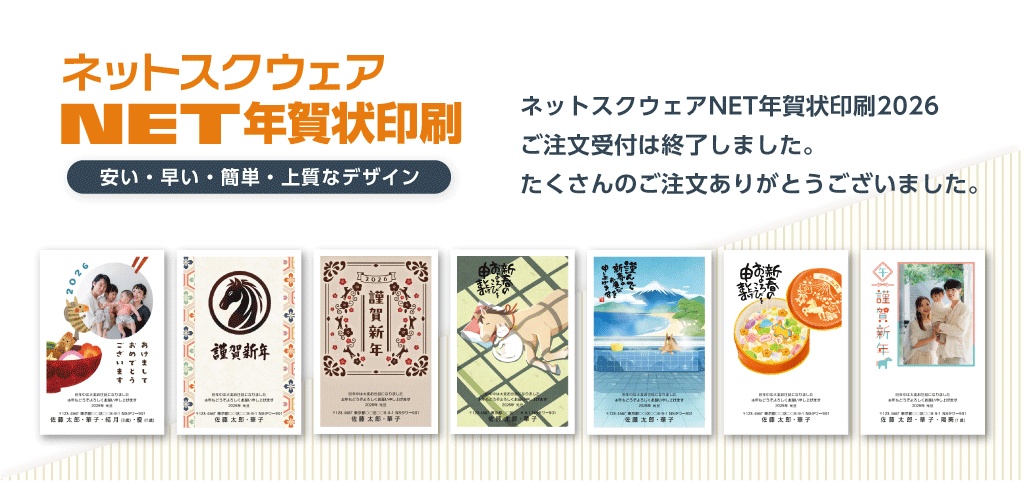 年賀状印刷の注文受付は1/15 14:00 で終了しました。